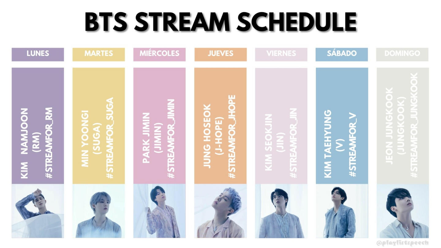 Nos dedicamos a compartir playlists de diversas plataformas enfocadas en BTS y sus trabajos individuales, además de resolver dudas sobre stream.