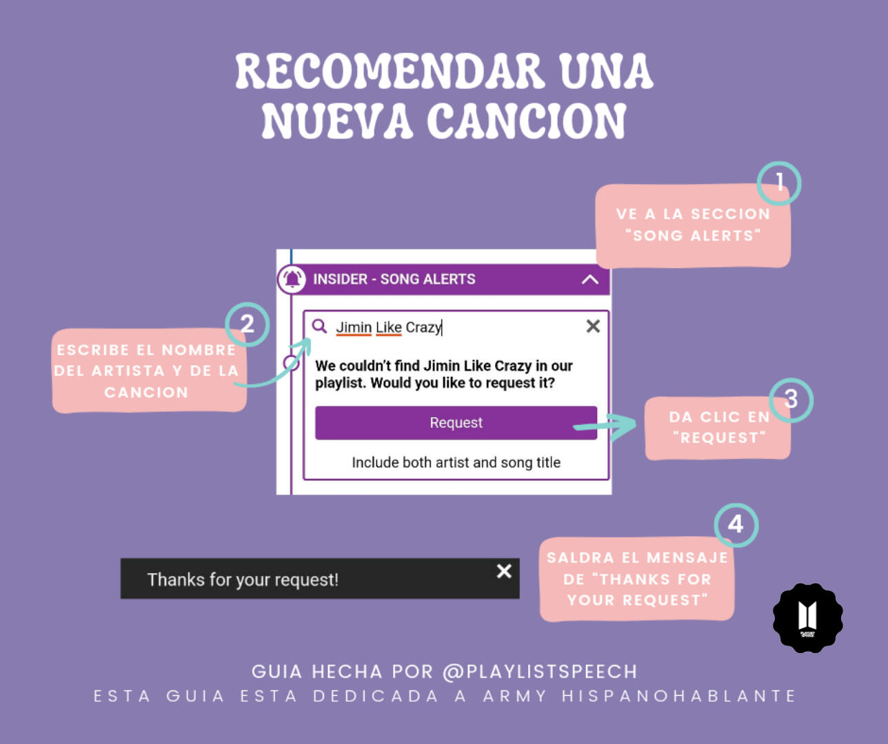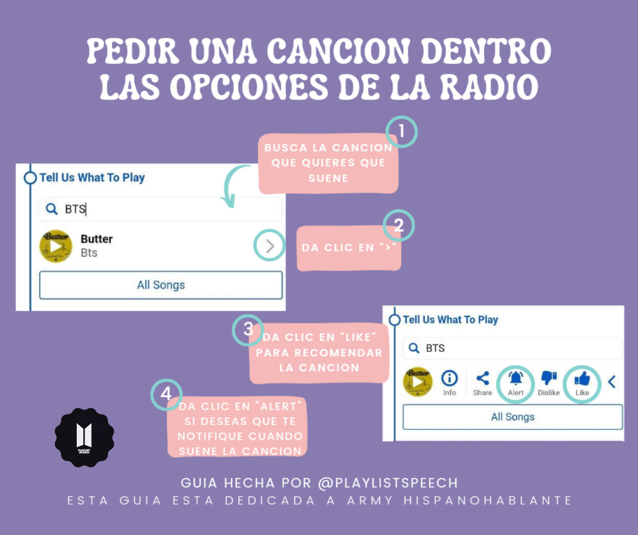 Nos dedicamos a compartir playlists de diversas plataformas enfocadas en BTS y sus trabajos individuales, además de resolver dudas sobre stream.
